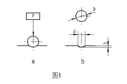 金屬布氏硬度試驗(yàn)系采用一定直徑硬質(zhì)合金球,以規(guī)定試驗(yàn)力壓入被測(cè)材料表面(圖1a)按規(guī)定保持時(shí)間后,卸除試驗(yàn)力,(圖1b)測(cè)量試樣表面的壓痕直徑,以計(jì)算出布氏硬度,并以下式計(jì)算之: HBW=0.102 x 2F/πD(D-